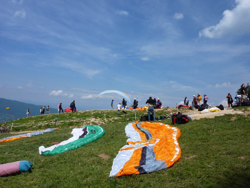 The launch was a little busy due to some French paragliding competition misguidedly named the "World Cup". I launched at about 2PM into a friendly sky full of Cu and made my way north along the lake. About one hour later I noticed a Cu Nim growing in the south of the valley, over the Doussard landing field. I was about 15km away, high, with good visibility over the valley and the north was looking lovely so this strengthened my decision of pushing away. I kept heading north around the lake, all the way to the Semnoz ridge where I found myself in the southwesterly's wind shadow, without any safe options to get any further so I landed near the village of Sacconges.